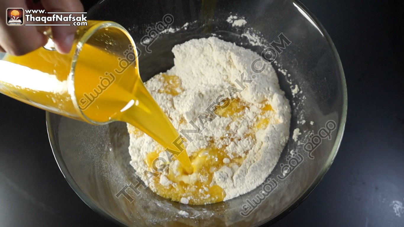 - نقوم بإضافة الزبدة الساخنة ثم نضيف الماء بالتدريج