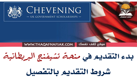 تم الإعلان عن بدء التقديم لمنحة تشيفنج البريطانية للدراسة في المملكة المتحدة وهي برنامج عالمي للدراسة في المملكة المتحدة الذي تموله وزارة الخارجية وشئون الكومنولث والمنظمات الشريكة والذي يهدف إلي تشكيل فريق لقادة المستقبل في جميع أنحاء العالم . يقدم البرنامج جوائز للباحثين البارزين ذوي القدرات القيادية في جميع أنحاء العالم لدراسة دورات الدراسات العليا في جامعات المملكة المتحدة .