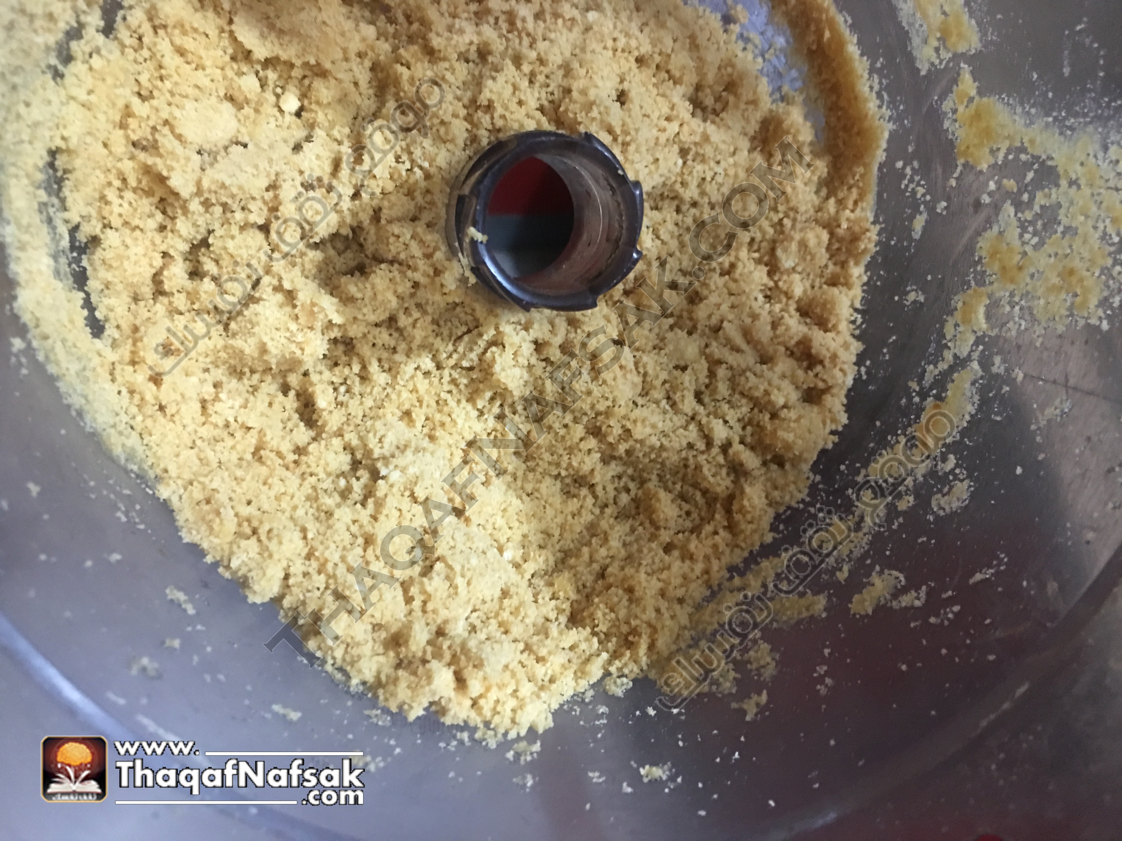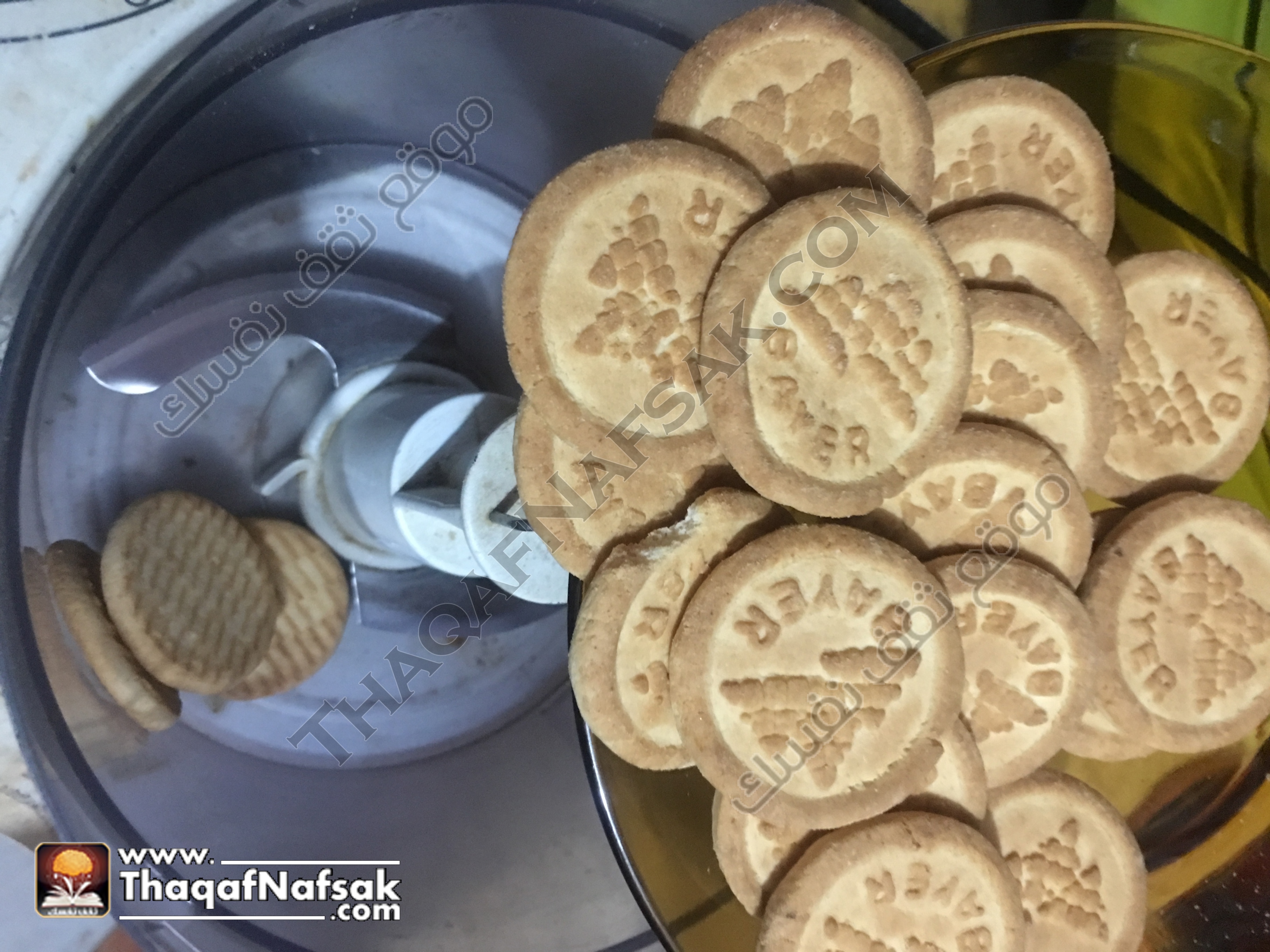 1- نضع البسكويت في الكيتشن ماشيين الخاص بالفرم .