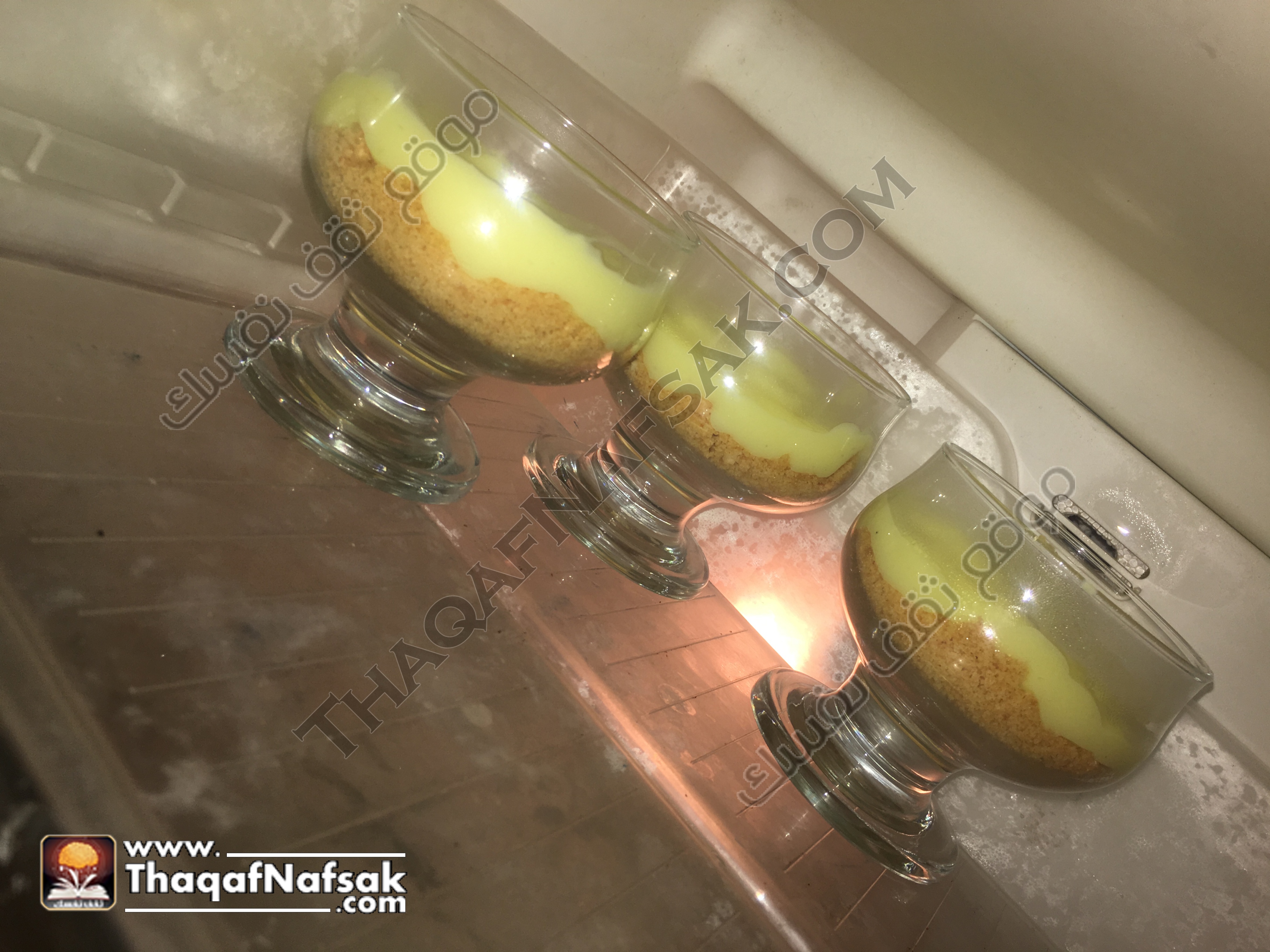 ومن ثم بنقوم بادخال الكاسات التلاجة مرة أخرى وتركها 4 ساعات .