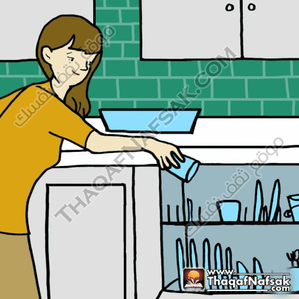 عندما تترك الأطباق تتراكم وتصبح أكبر وأكبر فإن مستوي الإهتمام بغسل هذه الأطباق سوف يصبح أصفر ولن تهتم بغسلها . لذلك، لا تدع الأطباق تتراكم في الحوض .