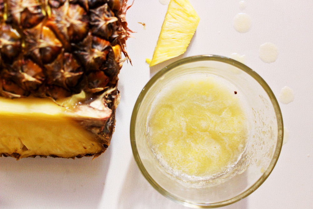 - إغسل الأناناس أولاً جيداً ثم قطعه بعناية إلى 4 قطع صغيرة أو متوسطة الحجم.