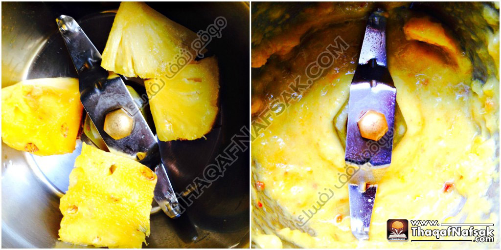 - 1 ملعقة كبيرة من الأناناس المهروس.