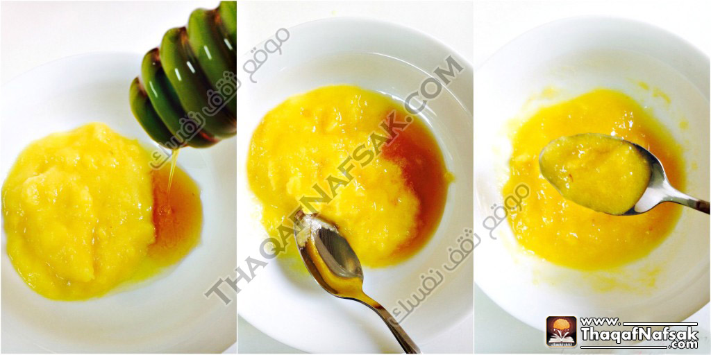 - صب ملعقة كبيرة من الأناناس المهروس في وعاء و أضف إليه ملعقة صغيرة من العسل. و إمزج الخليط جيداً حتى يمتزج.