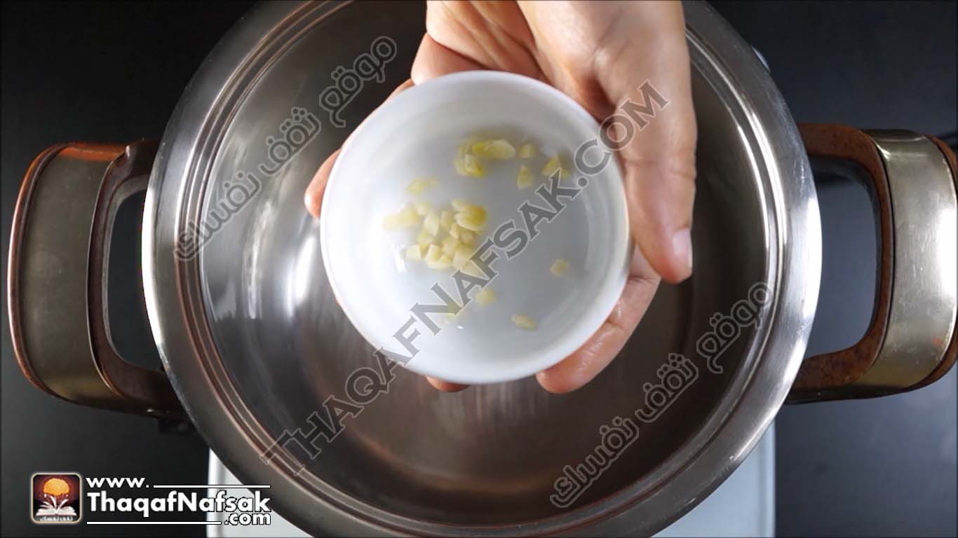 ثم نقوم بتحضير الصلصة السابق ذكر مكوناتها عن طريق وضع الثوم فوق الزيت في حلة على النار ثم نقوم بعد تشويح الثوم بإضافة عصير الطماطم والبهارات والبابريكا والملح .