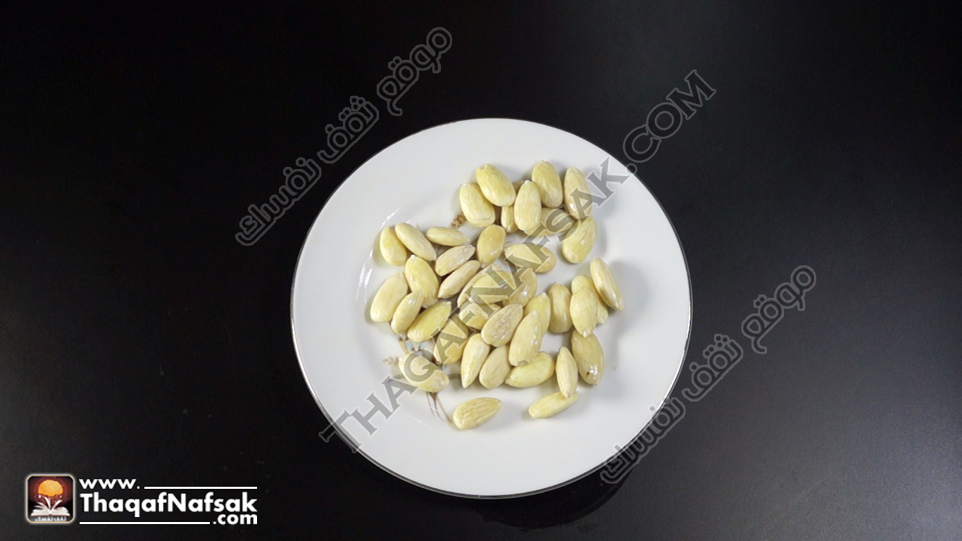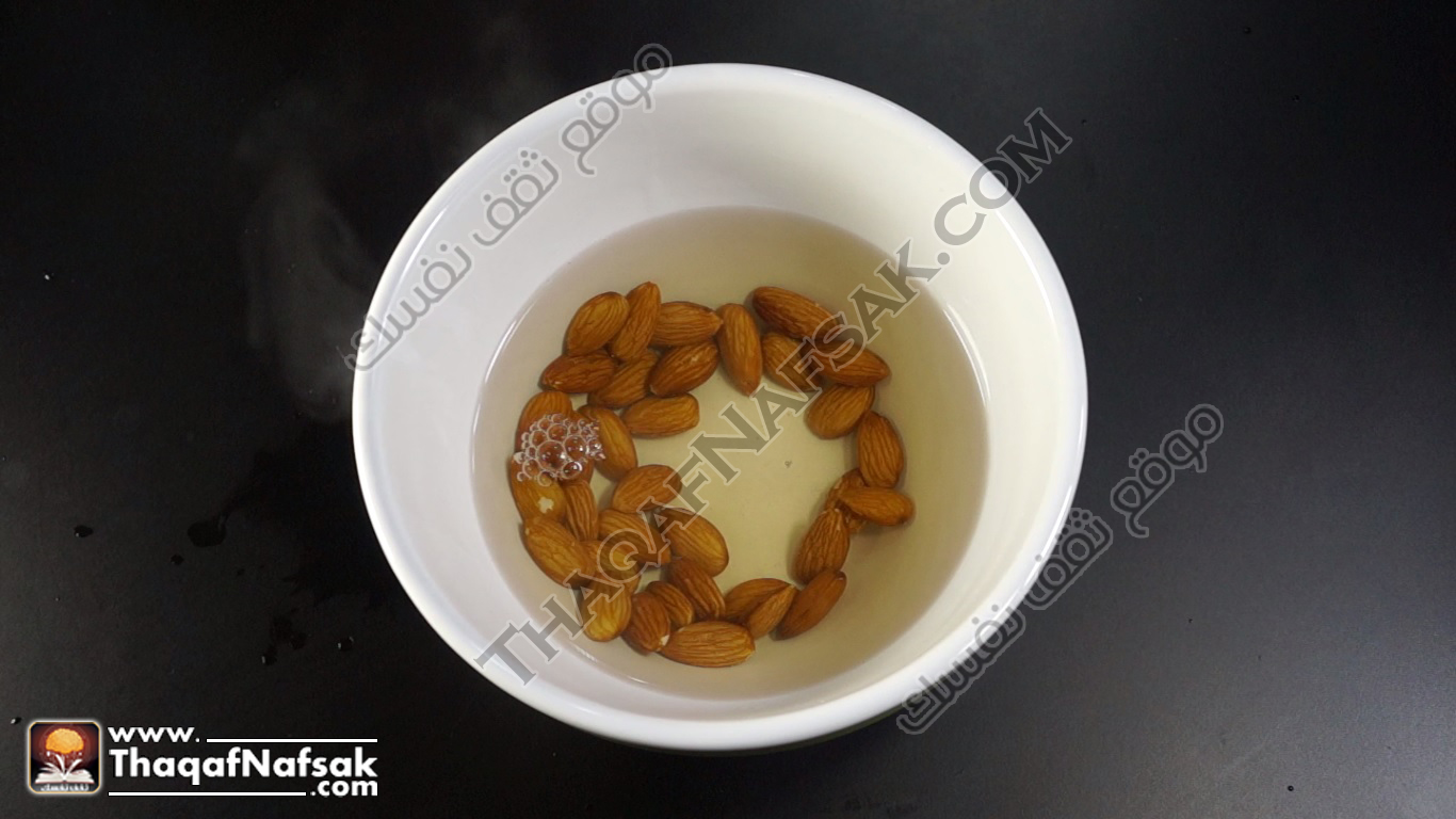 • نترك اللوز في الماء المغلي لمدة 15- 30 دقيقة حتى يصبح سهل التقشير .