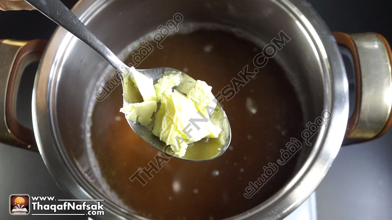 • بعد ذلك نقوم بإضافة معلقة الزبدة .