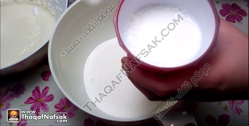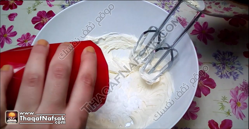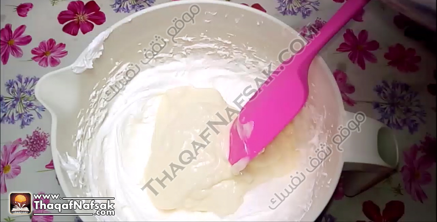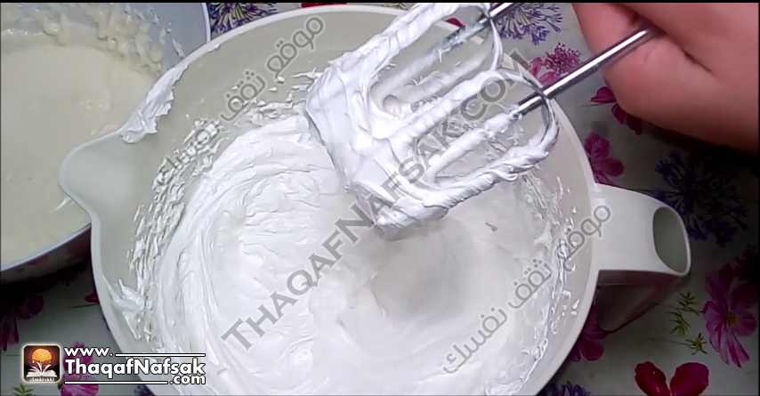 نخفق المزيج جيدا حتى يتجانس ويصبح المزيج كريمي وناعم .