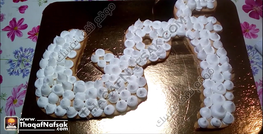 ثم نغطي اول طبقة من أني بالكريمة ثم نضع فوقها الشكل التاني من أمي .
