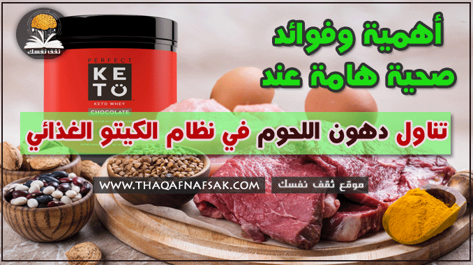 دهون اللحوم مصدر مهم في نظام الكيتو حيث يمكن تناول دهون اللحوم في نظام الكيتو والاعتماد عليها كمصدر أساسي لكمية الدهون اليومية التي يحتاجها الجسم . يعتبر نظام الكيتو