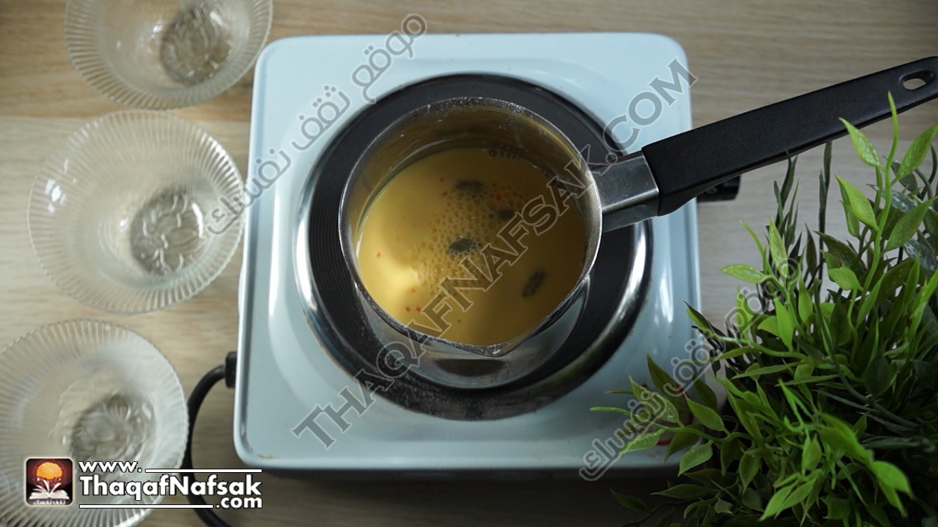 - نقوم بإزالة فصوص الحبهان من المشروب.