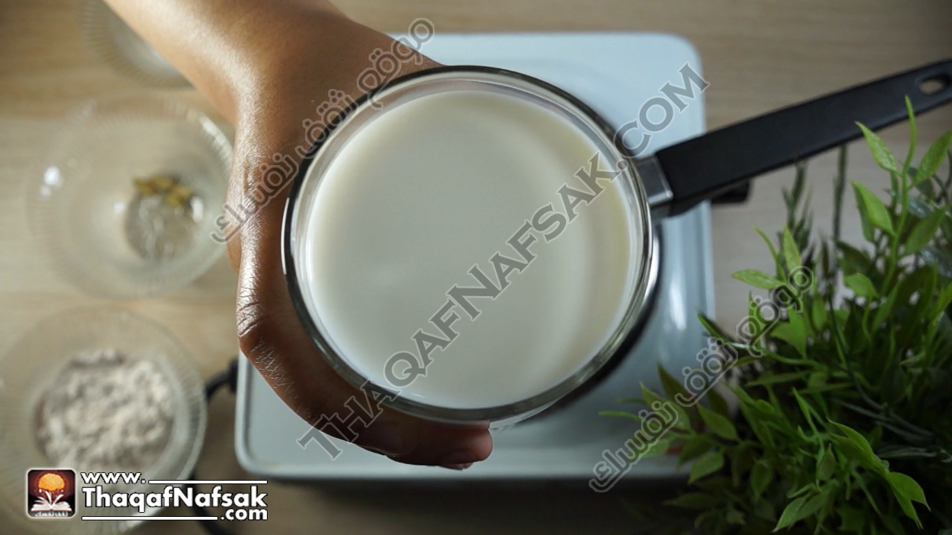 - نضيف الهيل الطازج إلى الحليب في الإناء .