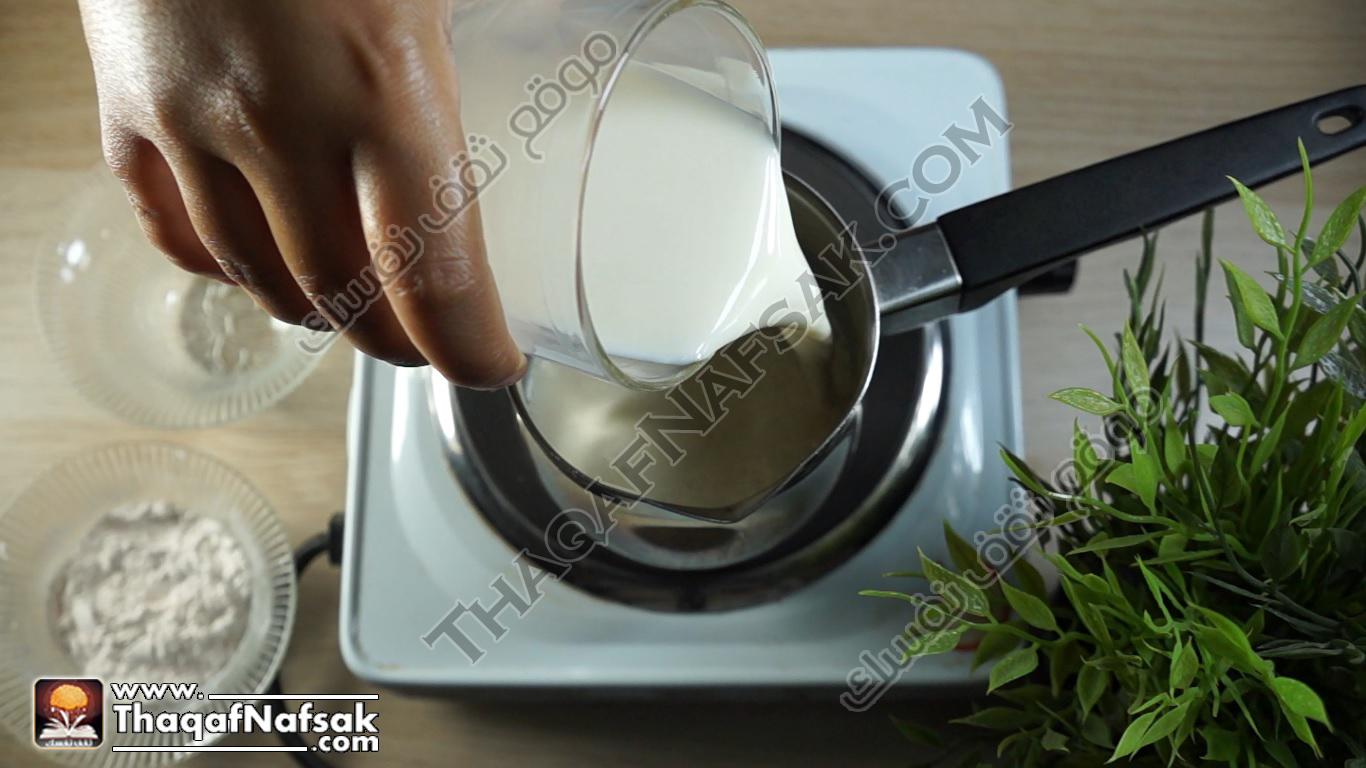 - نضع الحليب في الإناء على نار هادئة .