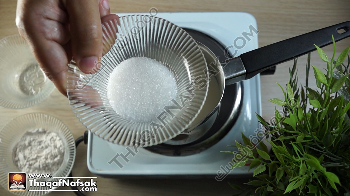 - ثم نضيف السكر ونحرك جيدا حتى يذوب السكر .