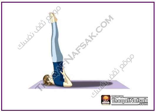 يساعدك هذا التمرين في تجديد العقل وتنشيطه ومن السهل تنفيذه بنفسك في المنزل . قم بالإستلقاء علي ظهرك مع وضع ذراعيك بجانبك والكفين إلي أسفل . ولا تنسي محاولة أخذ نفس عميق وإستخدام عضلات البطن في رفع قدميك بعيداً عن الأرض ورفع الساقين بشكل عمودي في زاوية 90 درجة والإستمرار في التنفس بشكل طبيعي وتقديم الدعم للوركين والظهر بيديك ورفعها بعيداً عن الأرض . السماح لساقيك بإتخاذ زاوية 180درجة يجب أن يكون ظهرك بشكل عمودي علي الأرض قد يكون التمرين صعب في البداية ولكن يمكن أن تحاول القيام به لبضع ثوان والثبات في هذه الوضعية ثم السماح للجسم بالإسترخاء مع التنفس بشكل مستمر . هل تعرف ماهي علامات الذكاء ؟