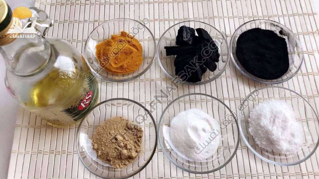 - المكونات: الكركم و بيكربونات الصودا و زيت الزيتون