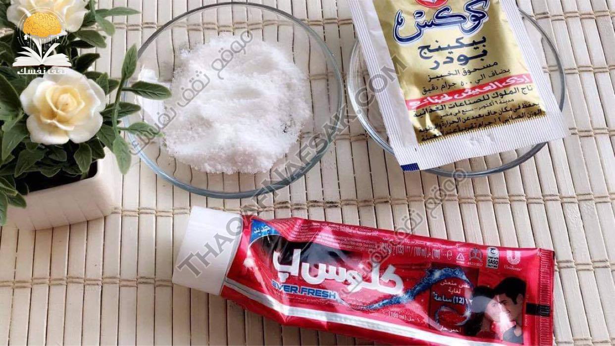 - المكونات : بيكينج بودر ومعجون أسنان وملح