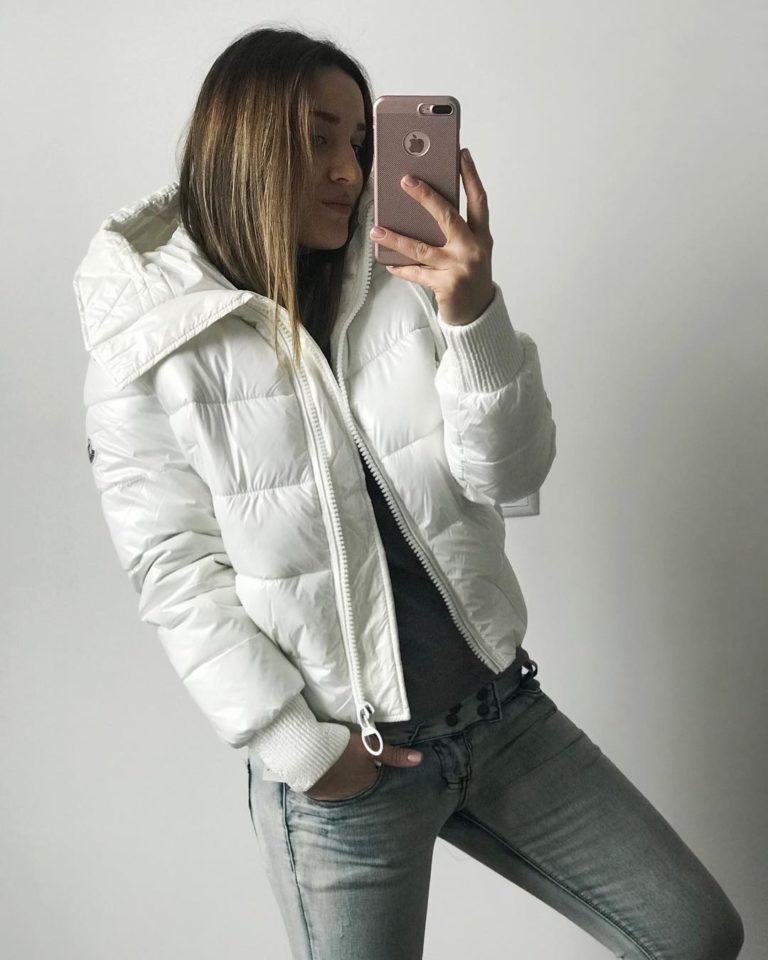 وتتميز جواكيت الريش النسائية بأنها متوسطة الطول ، ويُمكنك ارتدائها مع الجينز مع حذاء رياضي طويل أو التنانير القصيرة مع حذاء طويل .