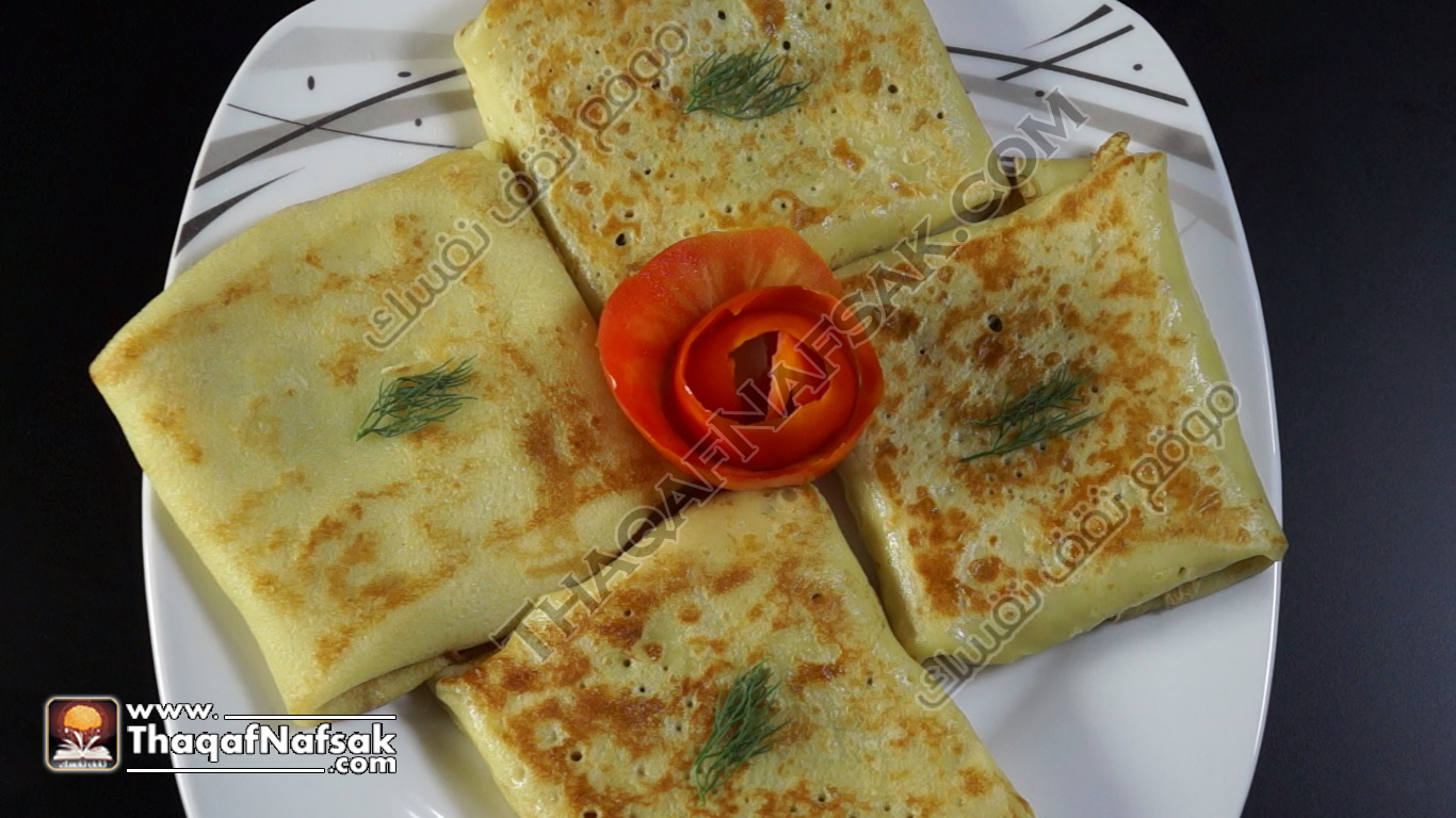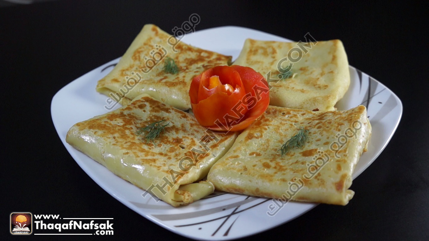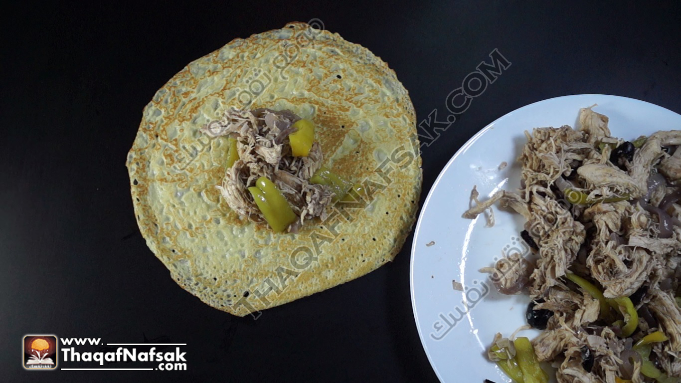 • نأخد طبقة من الكريب ونضع الحشو في المنتصف .