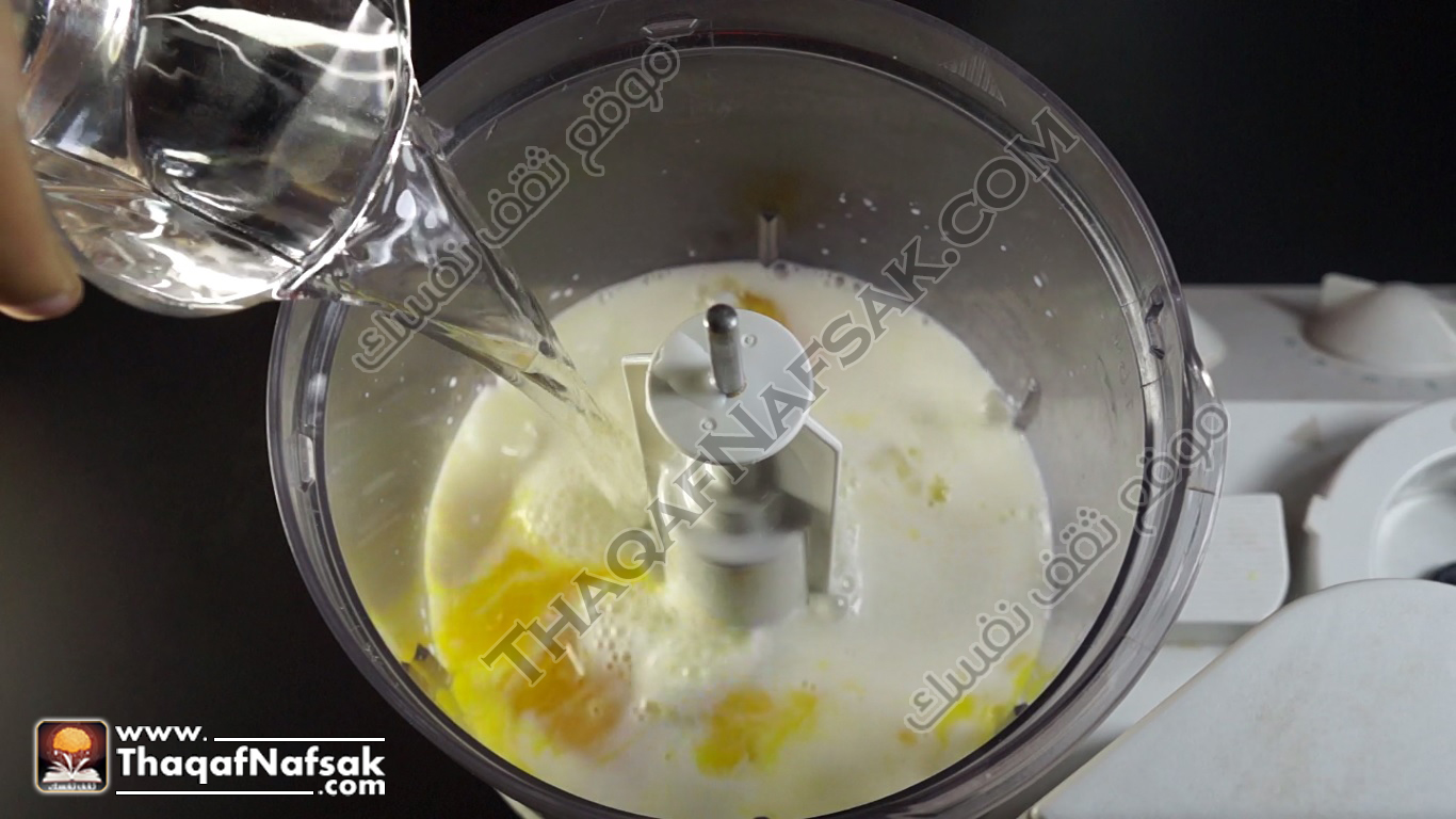 • بعد ضرب المكونات السائلة سويا نقوم بإضافة الملح .