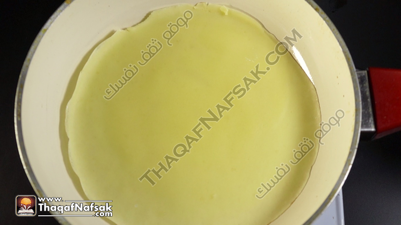 • نحرك المقلاة حتى تاخد العجينة الشكل الدائري للمقلاة .