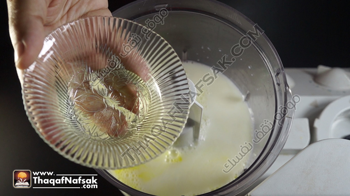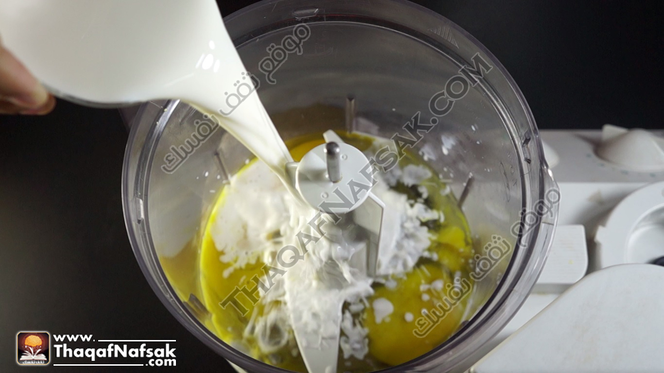 • ثم نقوم بإضافة الزيت إلى الحليب والبيض  .