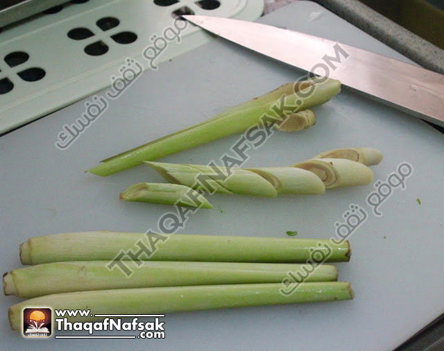- قم بغسل و تقشير الطبقة الخارجية من ساق عشبة الليمون ثم قطعه إلى أجزاء صغيرة.