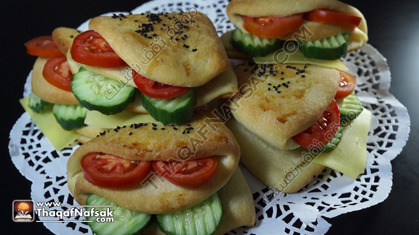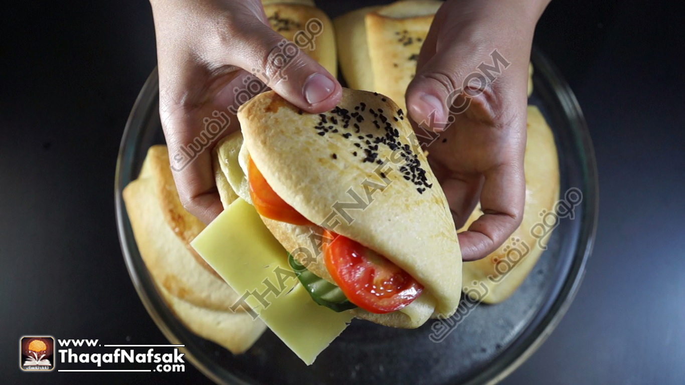 يمكن استبدال الحشوة بشرائح الجبن الرومي او اللانشون او التركي المدخن .