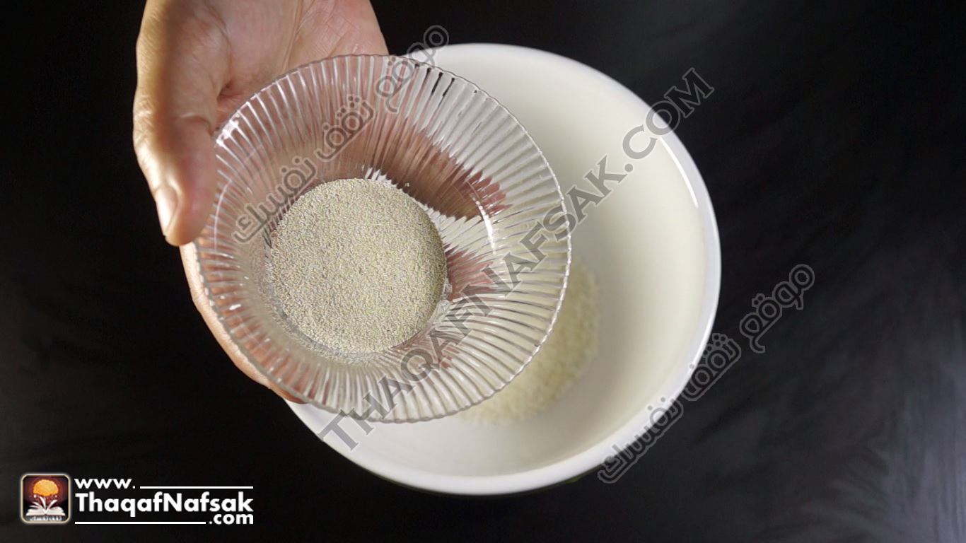 - ثم نقوم بإضافة الخميرة إلى السكر .