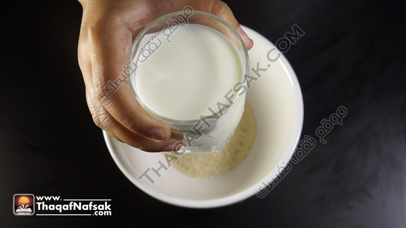 ملحوظة : يجب مراعاة أن يكون الحليب دافئ وليس ساخن حتى لا يقتل مفعول الخميرة .