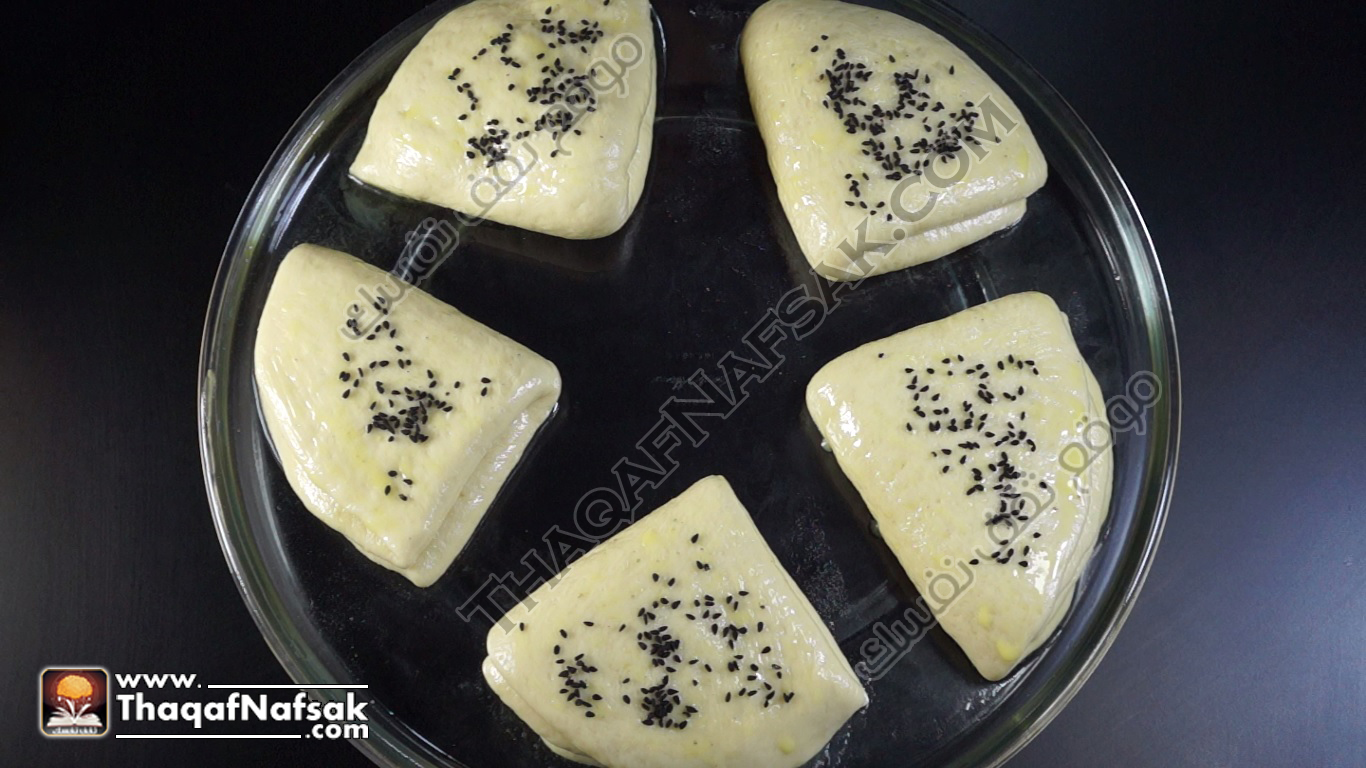 - ثم نضع الحبة السوداء او السمسم ونترك الفطائر لتخمر في مكان دافئ لمدة نصف ساعة .