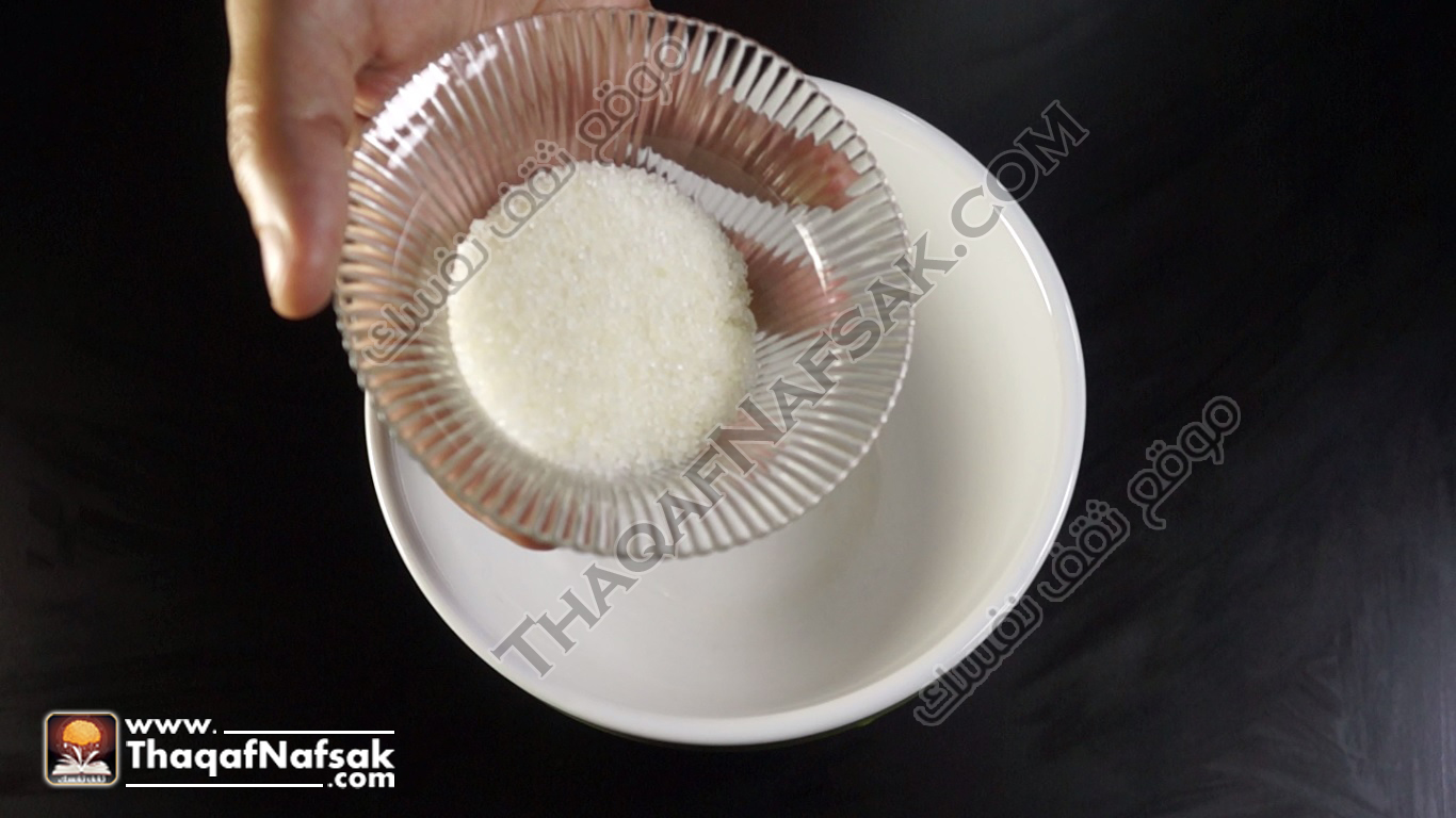 - في إناء صغير في البداية نضع السكر .
