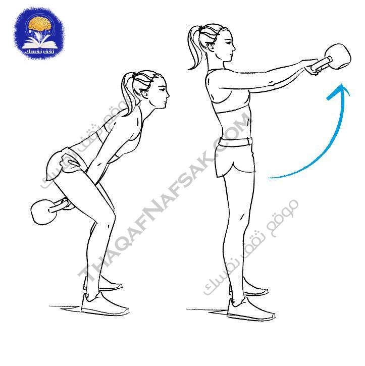 يساعد هذا التمرين على تقوية عضلات الفخذين و التي تعتبر من نقاط ضعف العديد من الرياضيين. حاول الوصول إلى مجموعتين من هذا التمرين كل منهما 50 مرة تأرجح، مع الراحة دقيقة واحدة بين كل منهما. يؤدي هذا التمرين إلى تشغيل عضلات الأرداف و العنق و أسفل الظهر. فقط قم بحركة التأرجح من بين قدميك حتى تصل الكرة الحديدية إلى مستوى كتفك. مع التأكد من الضغط على عضلات الأرداف عندما تصل الكرة الحديدية إلى الأعلى.