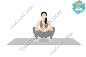 - قومي بتثبيت ركبتيك، واجعلي باطن القدمين يتلامسان مع تحريك الساقين للخارج.