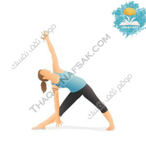 - قومي بخفض منطقة الصدر والبطن للأسفل من الناحية اليمني، مع ترك اليد اليمنى تتجه للأرض بينما ترتفع اليد اليسرى نحو السماء.