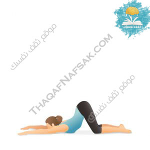 - أطيلي ظهرك وانزلي برأسك على البساط، وابقي على هذا الوضع 30 ثانية.