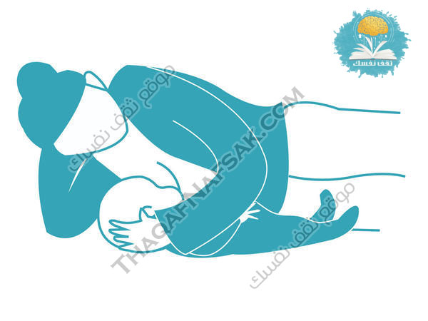 هذه الوضعية مريحة للرضاعة الليلية أو الرضاعة على السرير أو الاريكة، كما يمكن أن تكون أكثر راحة من الرضاعة أثناء الجلوس إذا كنتي قد قمتي بولادة قيصرية و ليست طبيعية. تحتاجين إلى الإستلقاء جانباً بجانب طفلك و بطنك في مواجهة بطن طفلك.