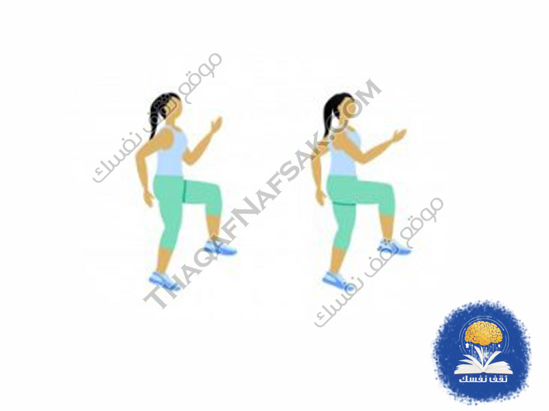 قم بالوقوف في شكل مستقيم مع مباعدة القدمين بمسافة عرض الكتفين ومحاولة رفع كل ركبة وخفضها مرة واحدة كما لو أنك تقوم بالجري في نفس المكان والتبديل بين القدمين بأسرع ما يمكن.