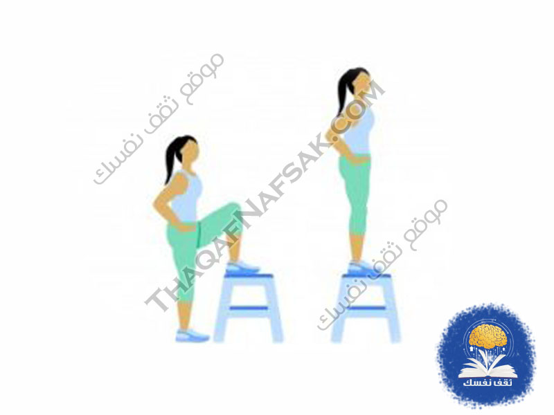 قم بالوقوف في مقابل الكرسي ومحاولة وضع القدم اليمني علي الكرسي والاعتماد علي الضغط علي كعب القدم اليمني لرفع بقية الجسم لأعلي الكرسي ثم أخذ خطوة إلي الوراء لوضع القدم اليمني علي الأرض مرة أخري يمكنك التبديل بين الساقين والاستمرار في القيام بالتمرين لمدة 30 ثانية فقط.