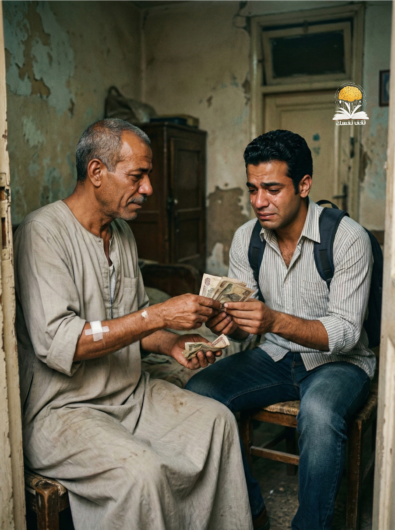 وفي يوم، ظهر فجأة على بابي.. جسمه هزيل، والشمس واكلة وشه، وبيرتعش. قعد على طرف الكنبة وهمس بصوت واطي: “يا ابني.. أنا تعبان. الدكتور قالي محتاج عملية بـ 60 ألف جنيه.. ومليش غيرك أقصده”.
