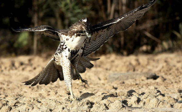 اثنين من الحيوانات المفترسة يقومان بمسح التضاريس احدهما من السماء يمسح الضخور بعينيه ذات النظر الحاد والاخر على الارض باستخدام انفه ولسانه المشقوق ليختبر الهواء المحيط للكشف عن وجود فريسة