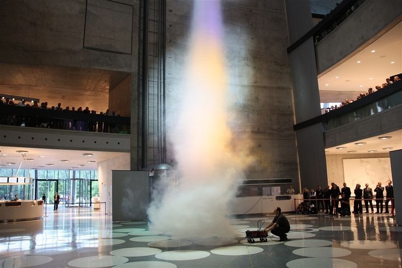 وكان لابد من إستخدام نظرية عمل الإعصار في توزيع الضغط والقوى الطبيعية حوله من أجل صنع نظام للتحكم في قوانين ميكانيكا الموائع الخاصة بالمبنى والتي تتناسب مع التصميم المعماري له وبهذه الطريقة تم إنشاء أكبر إعصار صناعي في العالم