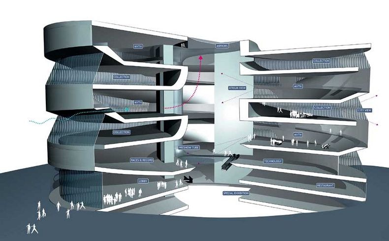 متحف شركة مرسيدس أكثر من مجرد موطن للتكنولوجيا المتحركة في العالم ففي عام 2007 ظهر في كتاب موسوعة دينس للأرقام لاقياسية أن متحف شركة مرسيدس يحتوي على أقوى إعصار صناعي في العالم حيث يبلغ إرتفاعه 34.4 متر والمثير أنه لم يُصمم لجذب السائحين بل كان مجرد قناة لتخرج الدخان خارج المبنى في حالة الحرائق
