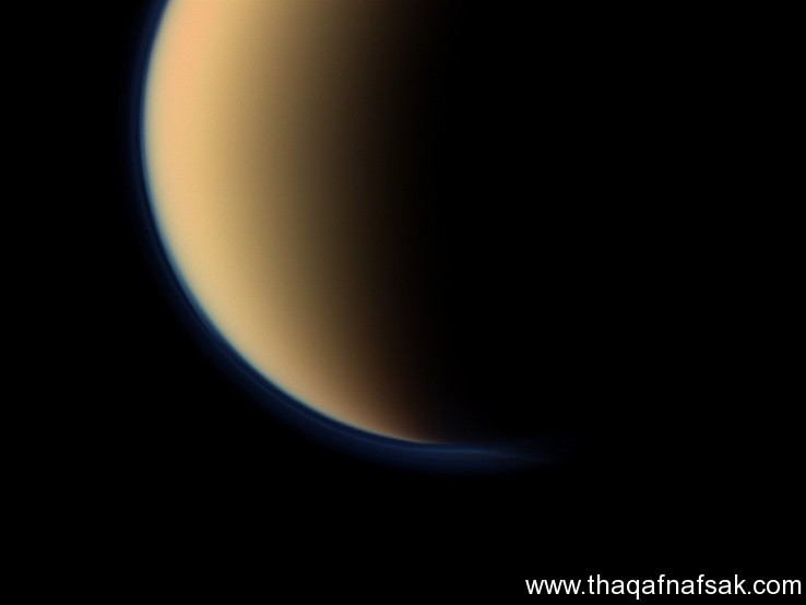 توضح هذه الصورة قمر تيتان حينما وقع قطبه الجنوبي في الضباب وهو أكبر أقمار كوكب زحل