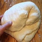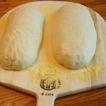 – وضع كل نصف علي وعاء و الفصل بينهم بمسافة كافية .و بإستخدام يديك قم بفرد العجين جيداً و تشكيل رغيف مستطيل و تجهيز كل رغيف علي لوح العجين و ترك مسافة بينهم و لا تضع الأرغفة قريبة جداً من بعضها ثم تغطية العجين و تركه لمدة حوالي 30 دقيقة .