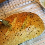 و في وعاء صغير قم بخلط زيت الزيتون و الأعشاب المجففة و الثوم المفروم والملح و الثوم و تجهيز فرشاة المعجنات . ثم دهن الخبز بالخليط جيداً بالفرشاة حتي يشكل طبقة في الأعلي . و بعد مرور 30 دقيقة قم بوضع الخبز في الرف السفلي من الفرن وضبط درجة حرارة الفرن علي 500 درجة حتي يسخن ثم تقليل درجة الحرارة 360 درجة .