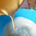 و الان يمكنك مزج خليط صفار البيض مع بياض البيض و يصبح الخليط مطاطي .