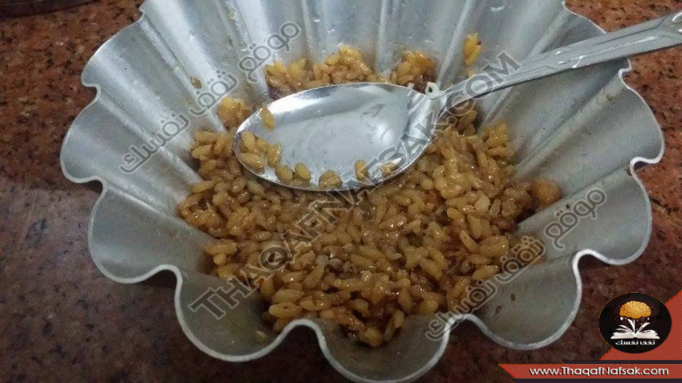 وهكذا نحصل شكل الارز نفس شكل الطبق اللي وضع فيه
