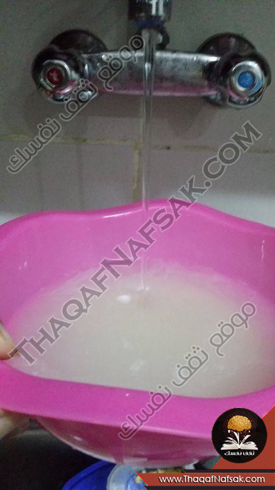 3- قومي بغسل الأرز جيدا بوضعه في طبق كبير تحت الماء وقومي بتصفيه الماء ثم اغسليه بالماء ثانية حتي تكون الماء صافيه نظيفة ، ثم صفي الأرز في مصفاة للتخلص من أي كمية ماء زائدة به .