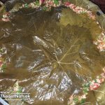 نغلق أطراف ورق العنب و نضع ورق أخر فوق السطح